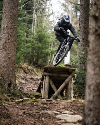 Ganz nach dem Motto: EAT, SLEEP, BIKE trifft man Jule mit Bike und Hund meist auf Trails im Wald oder auf dem Board in Schnee.