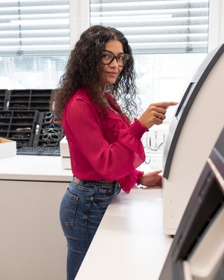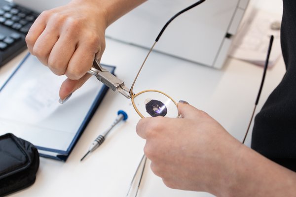 Ein weiterer Aspekt, der den Optik Shop besonders macht, ist die eigene Werkstatt. Hier können Brillengläser selbst geschliffen werden, etwas, wofür sich viele andere Optiker nicht mehr die Zeit nehmen. Diese Fähigkeit erlaubt es dem Team, noch individueller auf die Bedürfnisse der Kund:innen einzugehen und schneller maßgeschneiderte Lösungen zu bieten. Carolin betont: